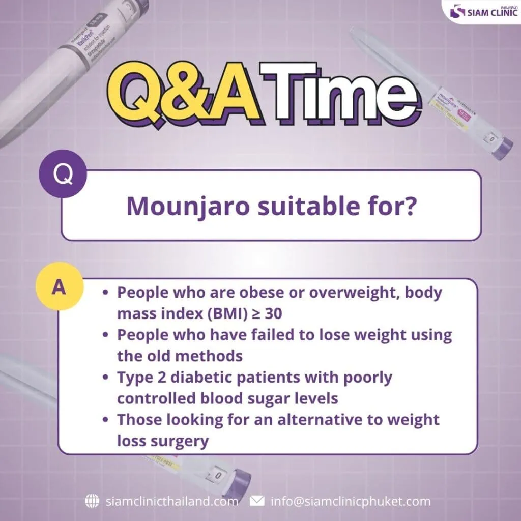 As of 2025, Mounjaro has been approved by Thailand’s FDA, with clinical availability expected in late 2025. Reputable wellness clinics like: