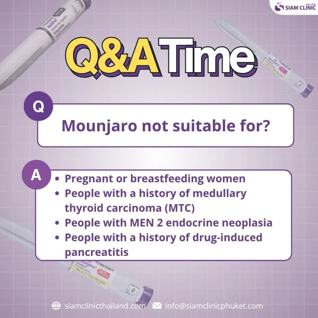 Note: Mounjaro is not recommended for pregnant women, individuals with a personal or family history of medullary thyroid carcinoma, or those with MEN2 syndrome.