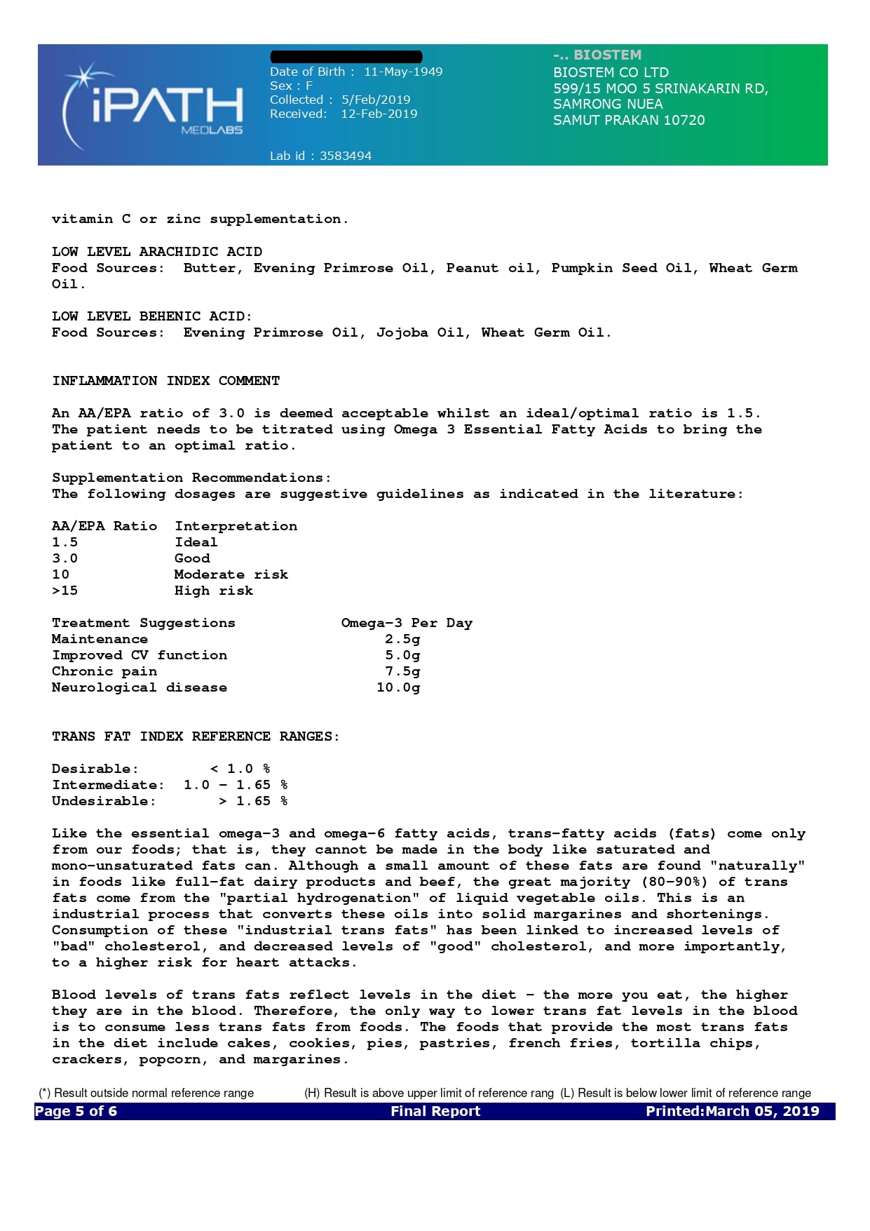 Siam Clinic provides level check-up services. fatty acid Vitamins, minerals. Antioxidants as follows: