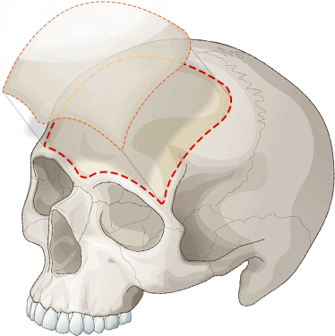 - จำเป็นต้องมีการผ่าตัด เปิดปากแผลบริเวณไรผมด้านบนหน้าผาก