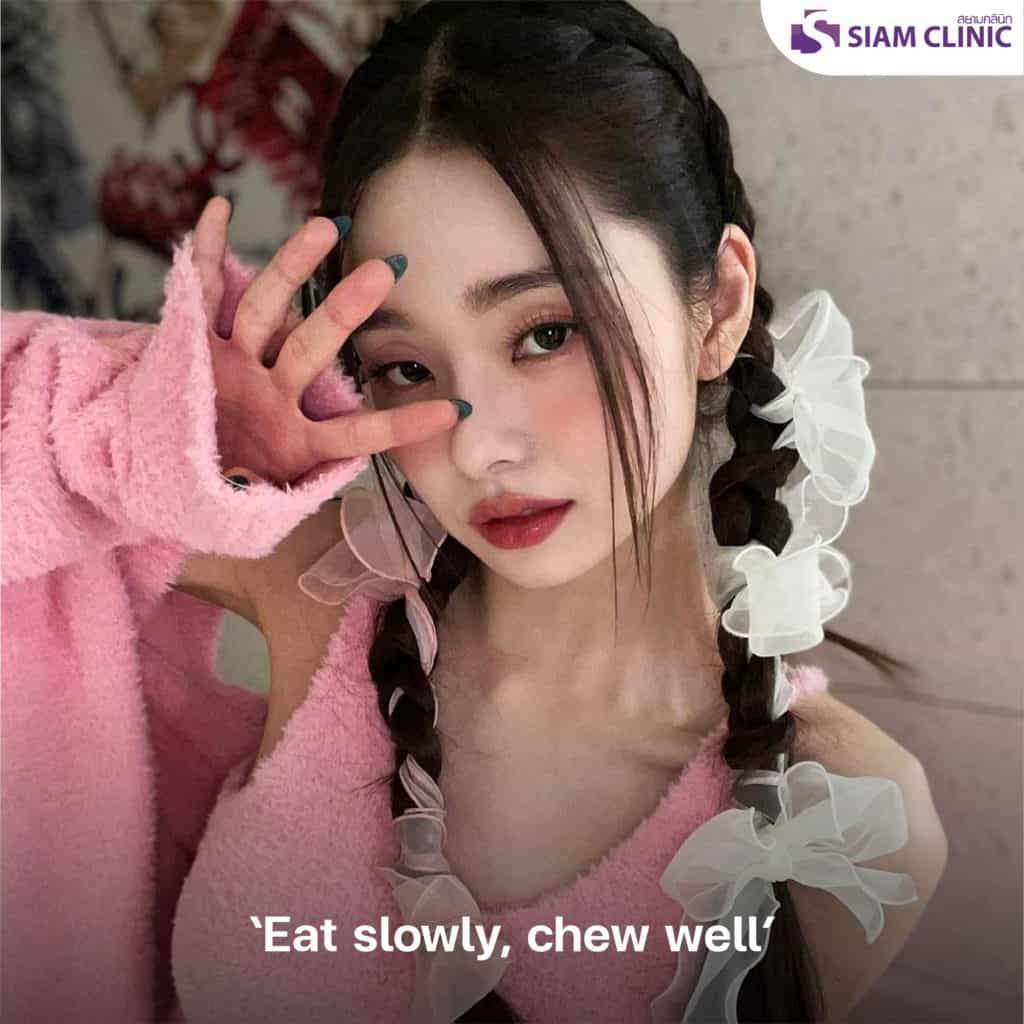 คซงจีอายังเผยว่าเธอมักจะเคี้ยวอาหารช้าๆ ให้ละเอียดอีกด้วย ซึ่งถือเป็นสิ่งดีที่สาวๆ อย่างเราควรเอาเป็นแบบอย่างเพราะวิธีนี้จะช่วยให้ร่างกายใช้เวลาในการย่อยอาหารน้อยลง ดูดซึมสารอาหารได้อย่างมีประสิทธิภาพ และยังทำให้รู้สึกอิ่มไวขึ้น