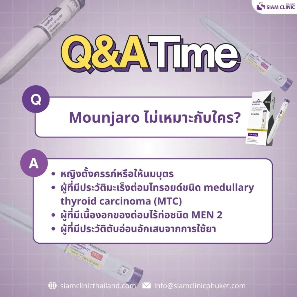แม้ว่า Mounjaro (Tirzepatide) จะเป็นนวัตกรรมยาลดน้ำหนักที่ทรงพลังและเห็นผลชัดเจน แต่ก็ไม่ได้เหมาะกับทุกคน การใช้ยานี้ควรอยู่ภายใต้คำแนะนำของแพทย์ และเหมาะกับผู้ที่มีลักษณะดังต่อไปนี้