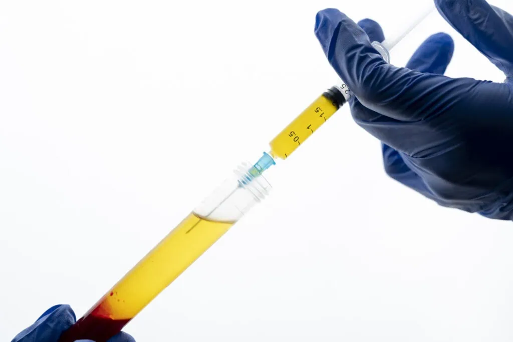 หลังปั่นแล้ว แพทย์จะทำการแยกเฉพาะส่วนที่เป็น พลาสมาเข้มข้น (PRP) ซึ่งอุดมไปด้วยเกล็ดเลือดและสารสำคัญในการซ่อมแซมเซลล์