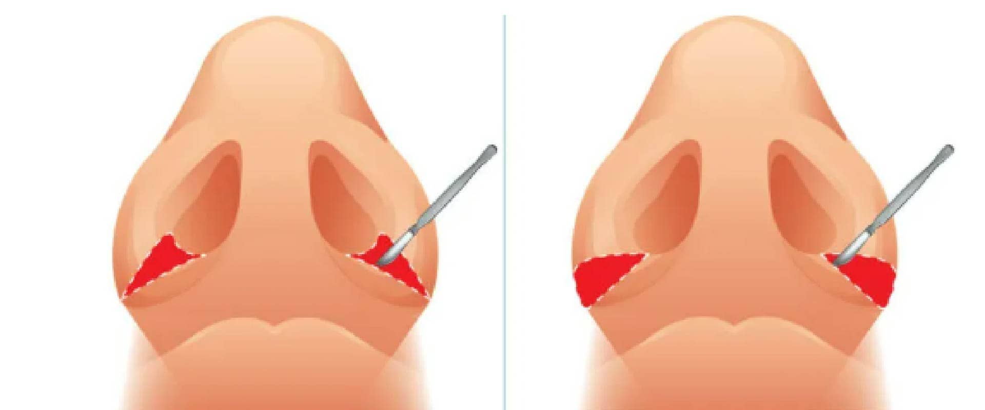 - แผลที่ซ่อนในรูจมูก ส่วนมากจะไม่มีแผลให้เห็นจากด้านนอก ศัลยแพทย์จะใช้ไหมละลายในการเย็บ ซึ่งไหมจะหลุดเองใน 3 อาทิตย์